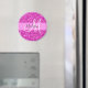 Glam Pink & Magenta Glitter Sparkle Monogram Name Magnet