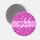 Glam pink and magenta glitter sparkles white monogram name and initial magnet. Your custom name and monogram are written in an elegant hand lettered script with a pink background. You can change the text color and font style and size using the customize option. A perfect birthday or Christmas gift!