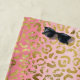 This glam beach towel features gold leopard pattern on a pink ombre background. Add your name to personalise. Perfect for a day at the beach.