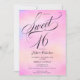 Glam pink rainbow holographic script chic Sweet 16 Invitation