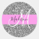 Glam Pink & Silver Glitter Sparkles Monogram Name Classic Round Sticker