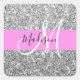Glam Pink & Silver Glitter Sparkles Monogram Name Square Sticker