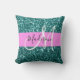 Glam Pink Teal Green Glitter Sparkle Name Monogram Cushion