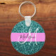 Glam Pink Teal Green Glitter Sparkle Name Monogram Key Ring