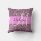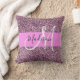 Glam violet purple glitter sparkles white monogram name and initial throw pillow. Your custom name and monogram are written in an elegant hand lettered script with a pink background. You can change the text colour and font style and size using the customise option. A perfect birthday or Christmas gift!