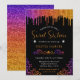 Glam Purple and Orange Gradient Glitter Sweet 16 Invitation