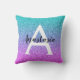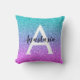 Girly and glam purple, lilac, aqua and turquoise mermaid glitter sparkles ombre monogram name and initial throw pillow. Personalise with your custom name in black and your monogram initial in white. You can change the text colour and font style and size using the customise option.