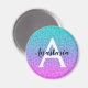 Glam Purple Aqua Glitter Sparkle Gradient Monogram Magnet