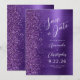 This elegant modern wedding save the date card features a purple brushed metal background decorated with faux diamond glitter. The customisable text combines white script and sans serif fonts. The reverse side repeats the purple brushed metal and glitter design.