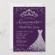 Glam Purple Diamond Sparkle Tiara Gown Quinceanera Invitation