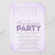 A stylish Graduation Party invitation design featuring a pretty soft lavender purple background with an image of sparkles and the words "Graduation Party" stylishly typeset featuring the word "Party" filled with an image of purple glitter. PLEASE NOTE: THIS DESIGN ONLY FEATURES A PRINTED IMAGE OF GLITTER; THERE IS NO PHYSICAL GLITTER USED OR INCLUDED; THERE ARE NO EMBELLISHMENTS.