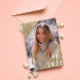 This luxury and glam photo Graduation invitation is perfect for the chic and elegant graduate. It features faux printed pretty gold sparkle glitter corners that frame a picture of the guest of honour with custom brushstroke typography and, on the back, a gold border that encapsulates the text on top of a simple girly dark purple background. This is a perfect fit for a modern, classy, and glitzy event. Change the colour of the font and background by clicking the "customise" button.