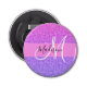 Glam Purple Pink Glitter Sparkle Gradient Monogram Bottle Opener