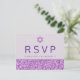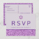Glam Purple Simple Modern Bat Mitzvah RSVP Postcard