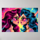 Step into the spotlight with the "Glam Rock Sisters," a stunning piece of electric pop art that crackles with the energy of a sold-out stadium show. In a dramatic face-off, two women, bound by style and spirit, hold a powerful gaze. This is a story of sisterhood, rivalry, or perhaps the two sides of a single rock-and-roll soul. Cascades of vibrant pink and blue hair frame their faces, while sunglasses hide their eyes but not their fierce confidence. The air around them is alive, charged with neon lightning and the electric hum of the crowd. What makes this artwork so special is its celebration of duality and dramatic, unapologetic glamour. It perfectly captures the theatrical spirit of the glam rock era, blending bold pop art visuals with a polished, high-fashion edge. This isn't just wall art; it's an attitude. Bring home the power and style of the ultimate rock duo and let your walls command the stage.