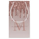 Glam Rose Gold Glitter Sparkle Drips Monogram Small Gift Bag