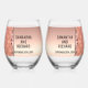 Glam Rose Gold Ripped Glitter Metallic Wedding Stemless Wine Glass