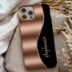 This design features a chic rose gold faux foil image on the left in the shape of a wave bordered with rose gold faux glitter. On the right, personalise it with your name in rose handwriting font on a black background.