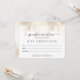 Your name or business name is elegantly displayed in a script font for a stunning impression on this designer gift certificate card. A delicate background of falling confetti dots in faux gold gives the illusion of shimmer. Great for makeup artists, hair stylists, beauty salons, boutiques and more. Please contact the designer if you need help with longer names or special typesetting. Art and design © 1201AM Design Studio | www.1201am.com