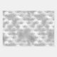 These gift wrap sheets feature a glam design of faux silver glitter crowns on a faux silver foil background.
