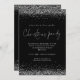 Glam Silver Glitter Script Christmas Party Black Invitation