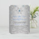 Glam Silver Snowflakes Crystal Blue Pearls Wedding Invitation