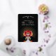 A gorgeous Day of the Dead or Dia de los Muertos themed birthday party invitation featuring a glamourous skeleton decked out in a crown of colourful roses and marigolds with stunning gold foil accents.