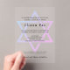 Celebrate your daughter’s Bat Mitzvah with modern elegance and a unique clear acrylic invitation. This design features a soft pastel Star of David layered behind crisp black and script typography, creating a sleek and sophisticated look. Printed on durable, clear acrylic, this invitation makes a lasting impression—perfect for families looking for something beyond traditional paper cards.