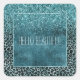 Glam Turquoise Teal Blue Leopard Print Glitter Square Sticker