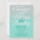 Glam White Glitter Sparkles Teal Engagement Invitation