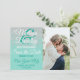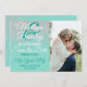 Glamourous, chic, and elegant faux printed sparkly white glitter on a teal green background, Save-the-Date wedding card. This classic and sophisticated design is perfect for the trendy and stylish marrying couple. Personalise with your own message on the front as well as a customised monogram initial on the back. All photo print design.