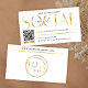 Create custom QR code business cards for your business using these glam white and gold effect social media business cards. Featuring trendy font in gold that reads 'Social', custom QR code, your contact details and business logo. Use these modern scannable URL business cards to promote your instagram, tiktok, facebook, youtube or any other social media.