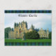Scenic photograph of Glamis Castle, Angus, Scotland - seat of Scottish Clan Lyon, with Clay Lyon tartan plaid border. Childhood home of the Queen Mother and home to the Lyon family since the 14th century