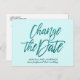 Glamorou Aqua glitter script change the date Announcement Postcard