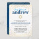 GLAMOROUS BAR MITZVAH rustic gold confetti blue Invitation
