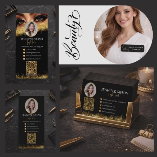 Glamorous Gold & Black Lash Tech QR Code Business Card