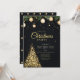 Create magical holiday memories with this show-stopping invitation showcasing a shimmering gold particle Christmas tree with elegant ornaments suspended above. The dark sophisticated background highlights the luxurious gold elements, perfect for upscale holiday celebrations, corporate galas, or elegant family gatherings seeking a contemporary festive aesthetic.