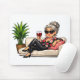 Cartoon of a glamorous elderly lady with a glass of red wine sitting on a couch