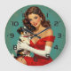 Glamour Girl with Dog Digital Art Large Clock