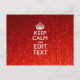 Your personalised Keep Calm saying on a fine custom fire red glamour style decor. A personalised Keep Calm style saying on a one of a kind gift. Humourous or whimsical try on your creative words on two editable lines of text. Remember to use CAPITAL letters for best results.