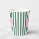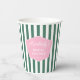 Combining modern classic cabana stripes and mid-century modern styling, this retro inspired pink and green paper cup design is for a Bride who wants an exclusive and glamourous bridal shower, modelled on the high-end escapes of the 1950s (Beverly Hills, Palm Springs). This modern vintage design is shown here for a Bridal Shower but all of the text can be customised to your event needs. All colours can be changed to match your event if preferred.