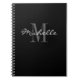Glamourous black and white custom monogram spiral notebook. Monogrammed office and school supplies. Add your own classy name initial letter. Elegant script typography. Chic personalised note book design for writing down notes, office work, planning, recipes and more. Classy graduation gift for high school senior, college grad and university student.