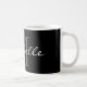 Glamourous black and white name monogram coffee mug. Design your own personalised cups. Elegant monogrammed design. Pretty typography Birthday or wedding favour gift idea for men, women, kids, friends and family. Stylish elegant script typography. Custom colour for name initial letter and background. Unique coffeemugs also available as large oversized drinkware and big to go travel mugs