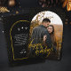 The back of the card continues the glamourous theme with a black and gold design and a heartfelt message that emphasizes the importance of cherishing everyday moments. The overall design is sophisticated and timeless, making it a perfect choice for couples seeking a unique and stylish holiday card to send to family and friends.