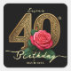 Glamourous Black Gold Red Rose Floral 40th Birthda Square Sticker