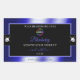 The design features a noble shimmering blue frame with fine decor lines, on a plain black background.