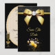 Beautiful elegant any age birthday party Save The Date for women, with printed images of a glamourous gold bow with a rhinestone diamond gem in the centre and a gold ribbon on a sparkly black glitter, and plain black background, with a bunch of gold and black balloons surrounded by stars. The reverse has a pretty orange pearl mat to encase your event details with 2 glasses of champagne with gold bows at the bottom all printed on a plain black background. All text is fully customisable to meet your requirements. Text colour can be changed. If you would like help to customise your product or would like matching products please contact me through my store and i will be very happy to help you. Pearl mat by ©Hazel Kinvig-Paul www.design-a-dream.co.uk