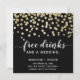 This striking minimalist wedding save the date card will add glamour and humour to your special day. Black background with large gold glitter confetti dots and elegant white text. Personalise with your own information and photo on the back. Don't forget the matching wedding invitation and other items.