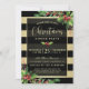 Send elegant, glamourous golden Christmas party invitations for your dinner party celebration this year with these easy to personalise / customise invites. The semi-transparent black overlay has a golden border over a background of horizontal gold and black stripes. The corners are trimmed with festive sprigs of holly and fir. Zazzle has lots of different fonts and font colours to chose from. Please note the all Zazzle products are digitally flat printed.