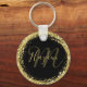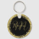 Glamourous Gold Glitter Monogram Name Black Key Ring